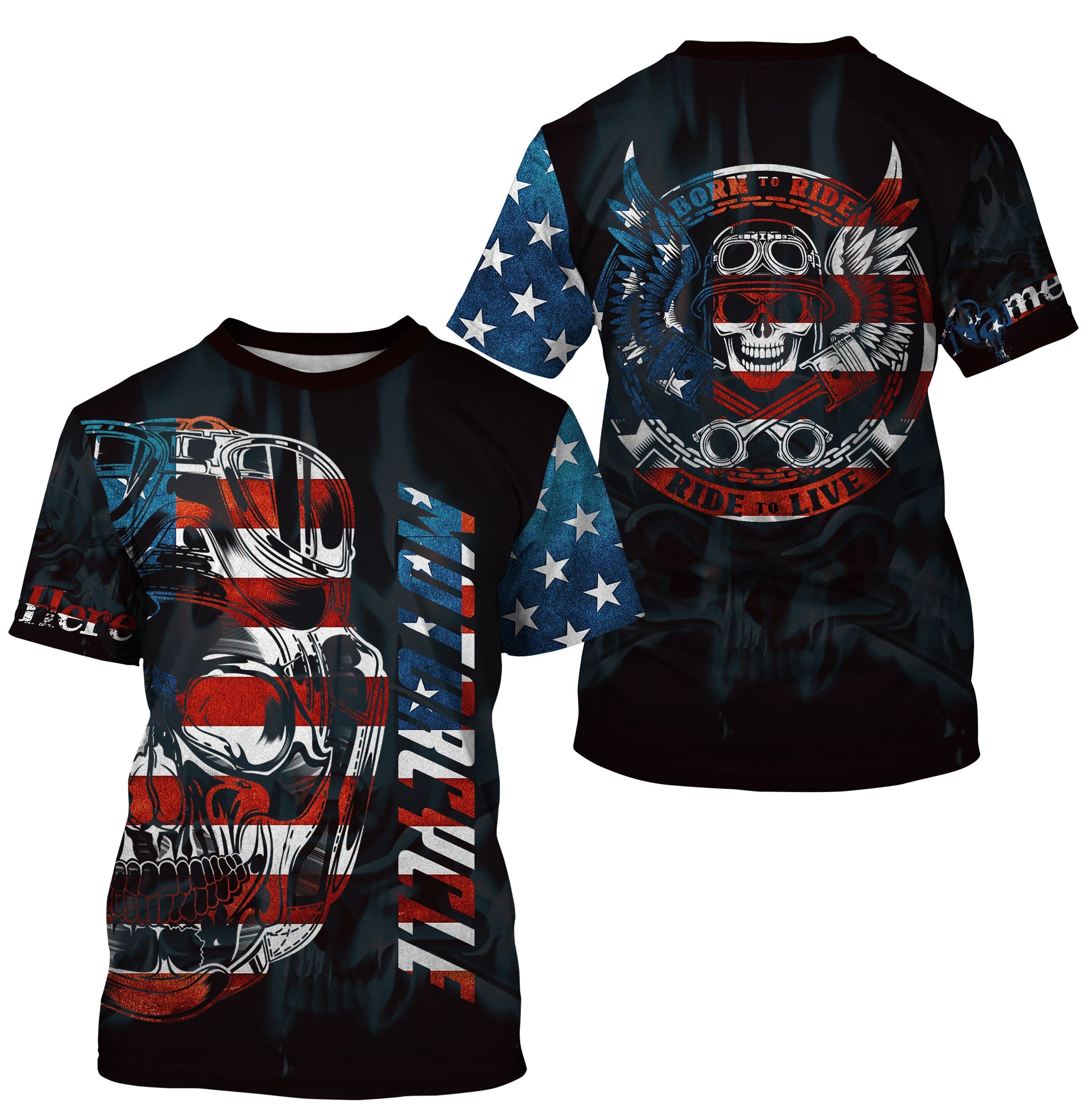 Patriotic Motorcycle Jersey UPF30+ Personalized Skull Biker Riding Shirt American Off-Road Jersey| NMS731