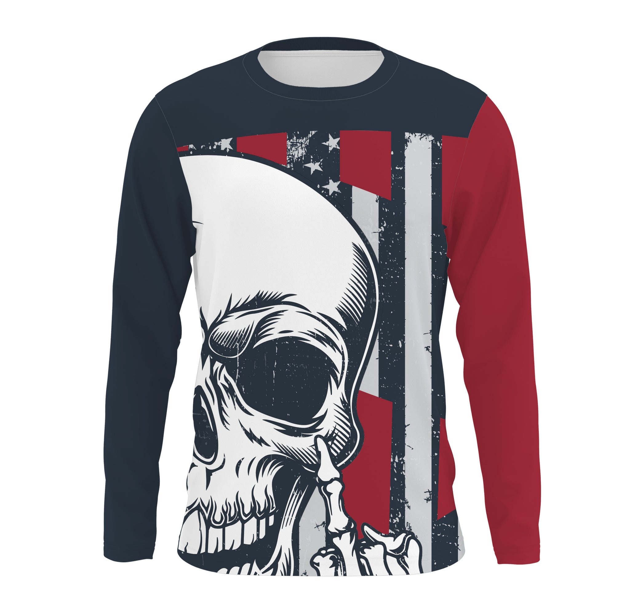 Patriotic Personalized Skull Jersey UPF30+ Motocross Biker Shirt, Motorcycle Off-Road Racing| NMS265