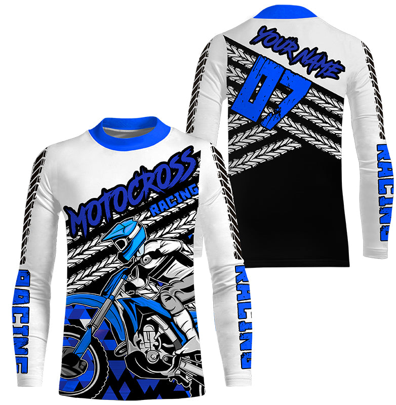 Personalized blue motocross kid men women jersey UPF30+ extreme off-road motorcycle shirt biker PDT414