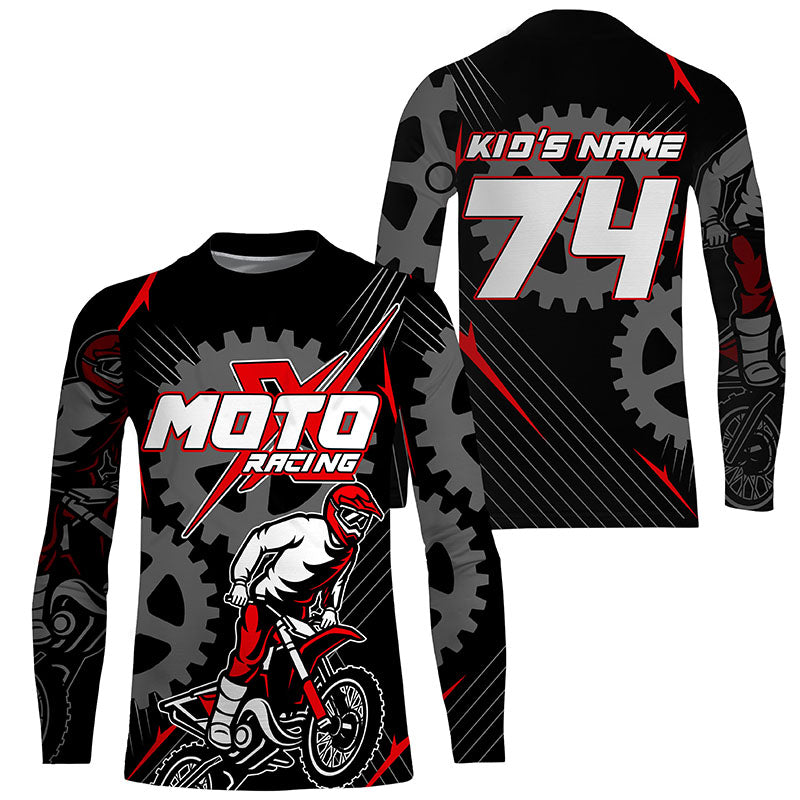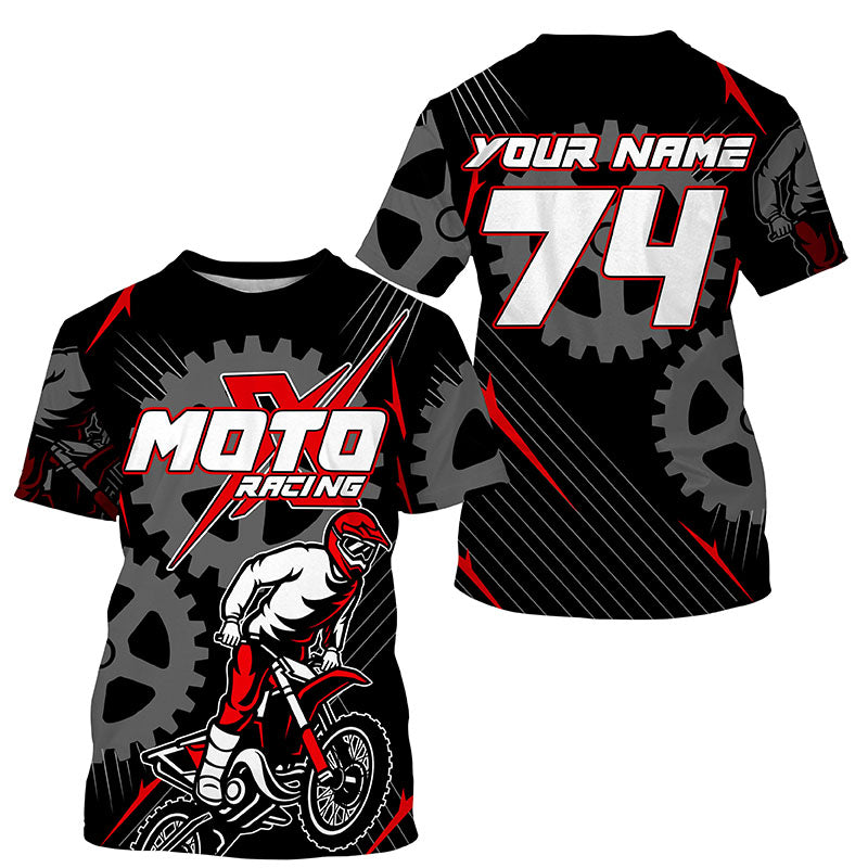 Personalized red dirt bike jersey for kid&adult UPF30+ Motocross racing MotoX off-road shirt PDT366