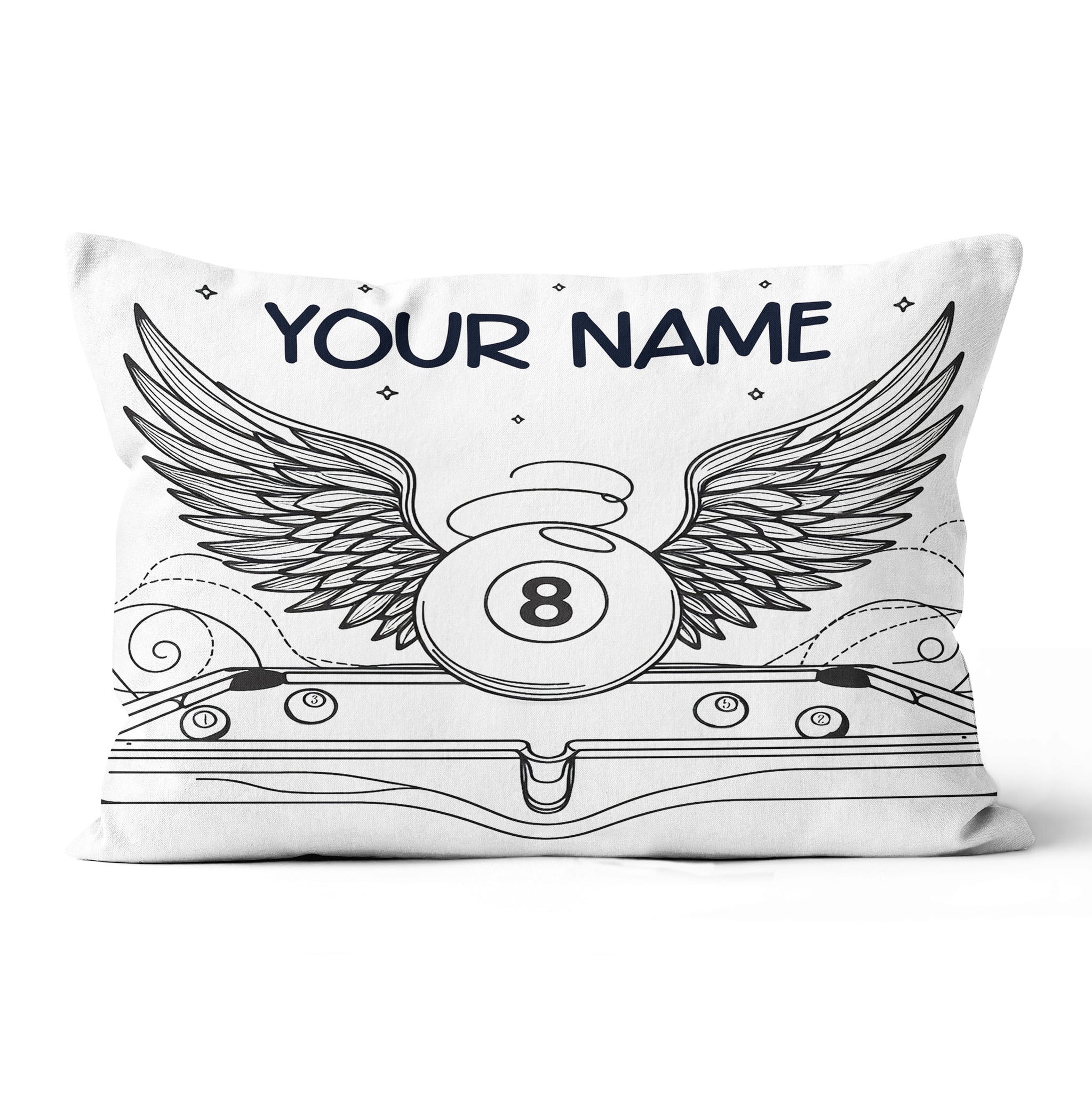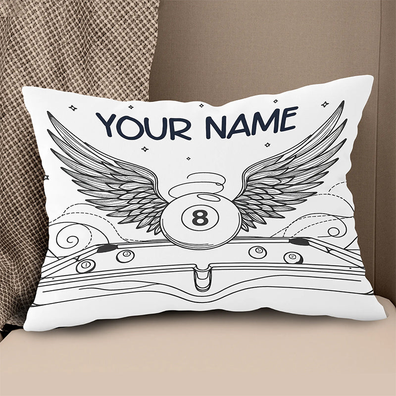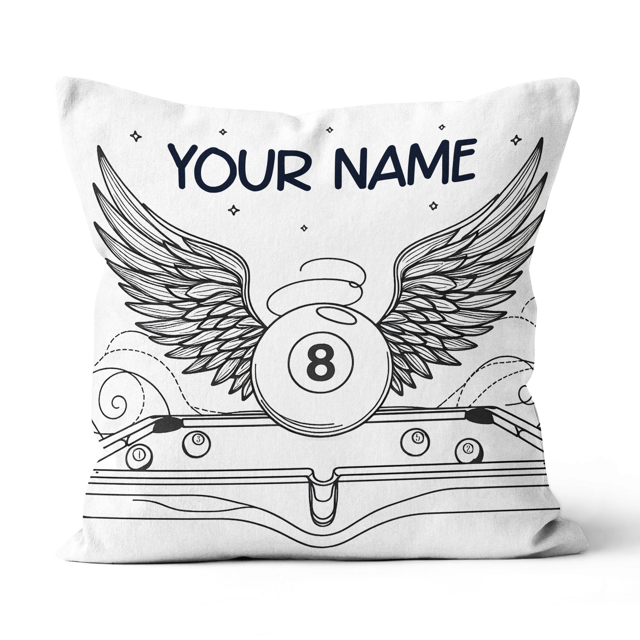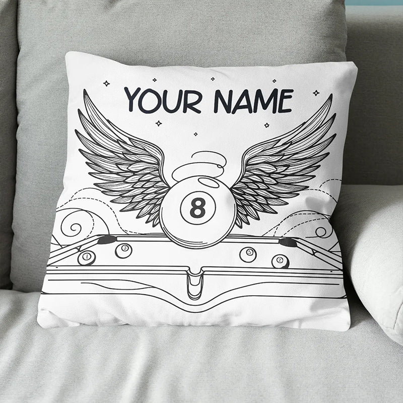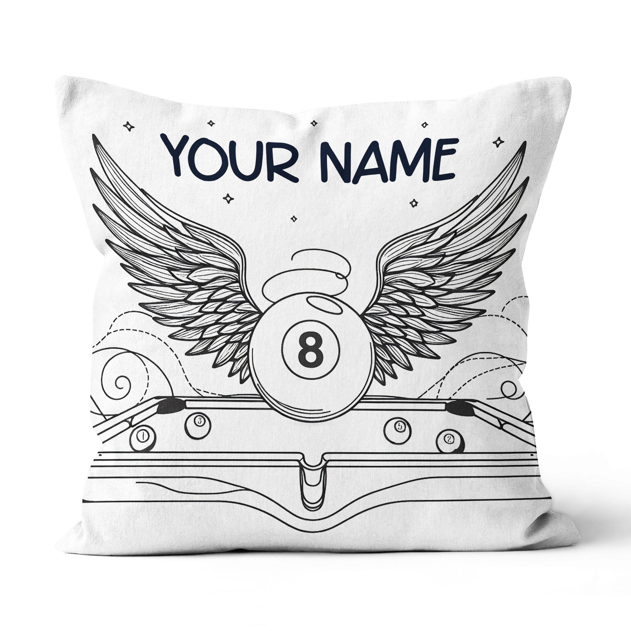 Personalized Billiard 8 Ball Wings Line Drawing Pillow, Billiards Gifts VHM0900
