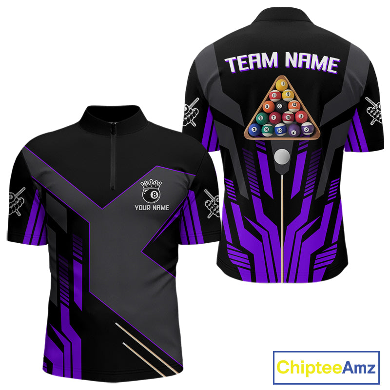 Personalized Purple Black 8 Ball Pool Shirt For Men, Billiard League Team Jersey Polo & 1/4 Zip TDM4227