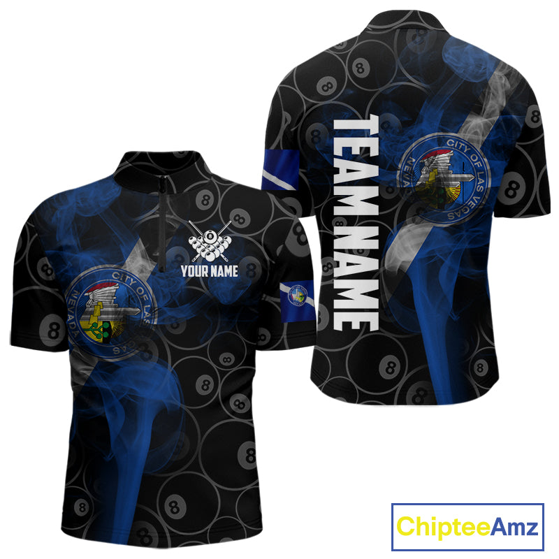 Personalized Las Vegas Flag Smoke Billiard Shirt For Men Custom 8 Ball Pool Team Jerseys TDM4287