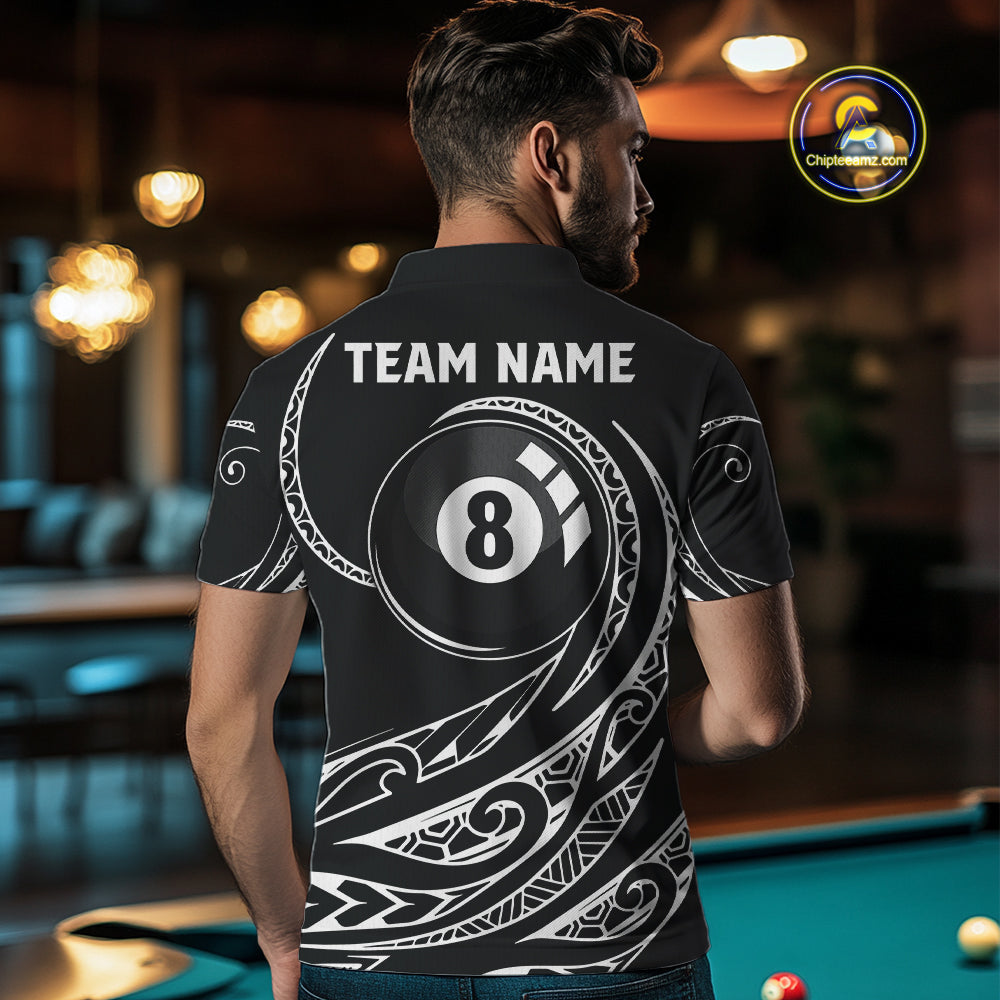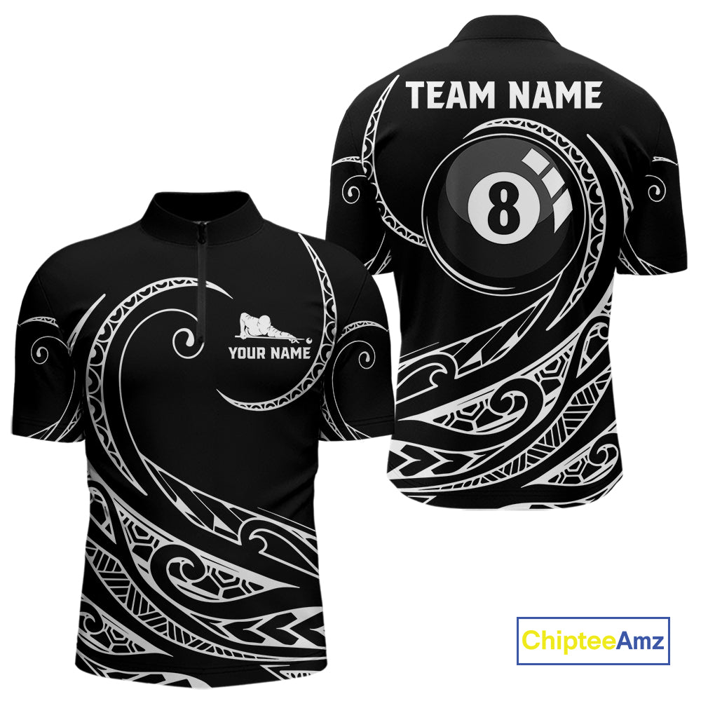 Black White 8 Ball Pool Tribal Billiard Shirt For Men Custom Billiard Team Jersey Polo & 1/4 Zip TDM4411