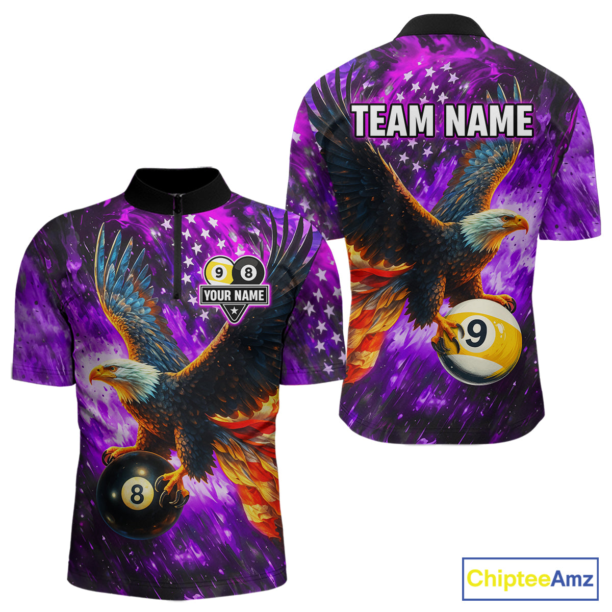 Personalized Purple Flaming US Flag 8 Ball & 9 Ball Eagle Billiard Shirt For Men, Pool Team Jersey TDM4436