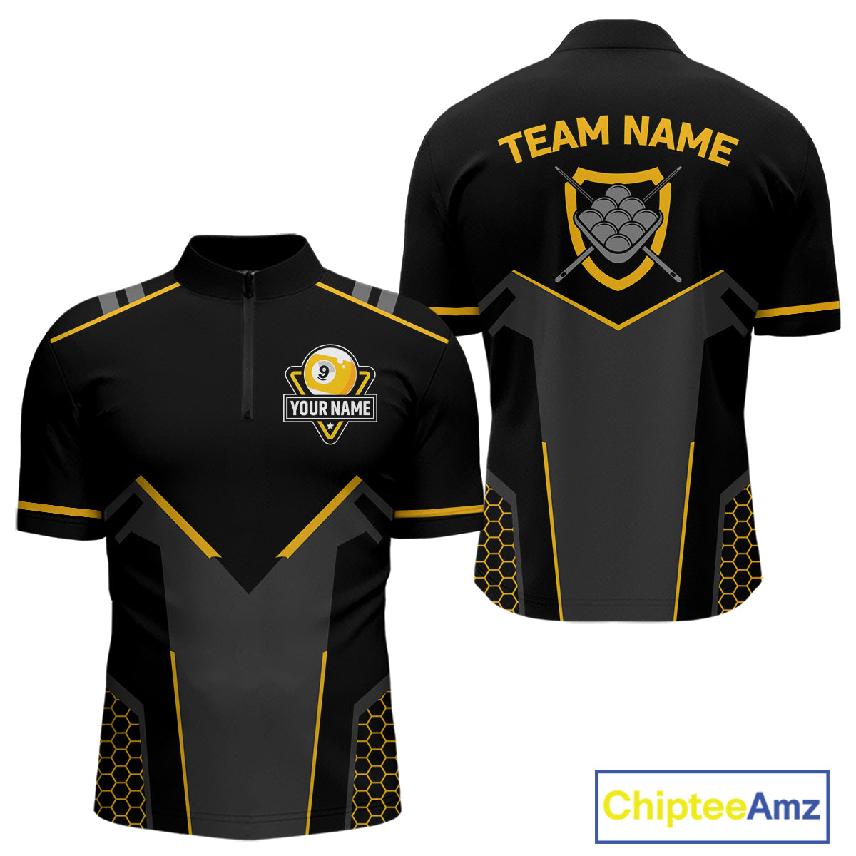 Personalized Yellow Black 9 Ball Billiard Shirt For Men, 9 Ball Pool Team Jersey Polo & 1/4 Zip TDM4476