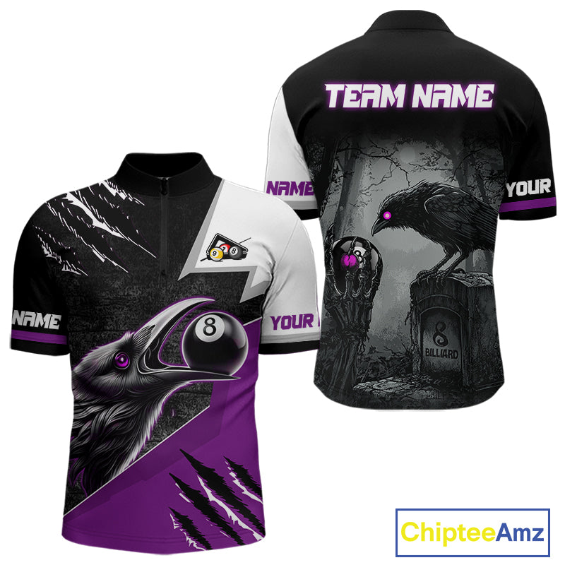 Personalized Purple 8 Ball Pool Crows Billiard Shirts For Men, Halloween Pool Team Jersey Outfit TDM4508