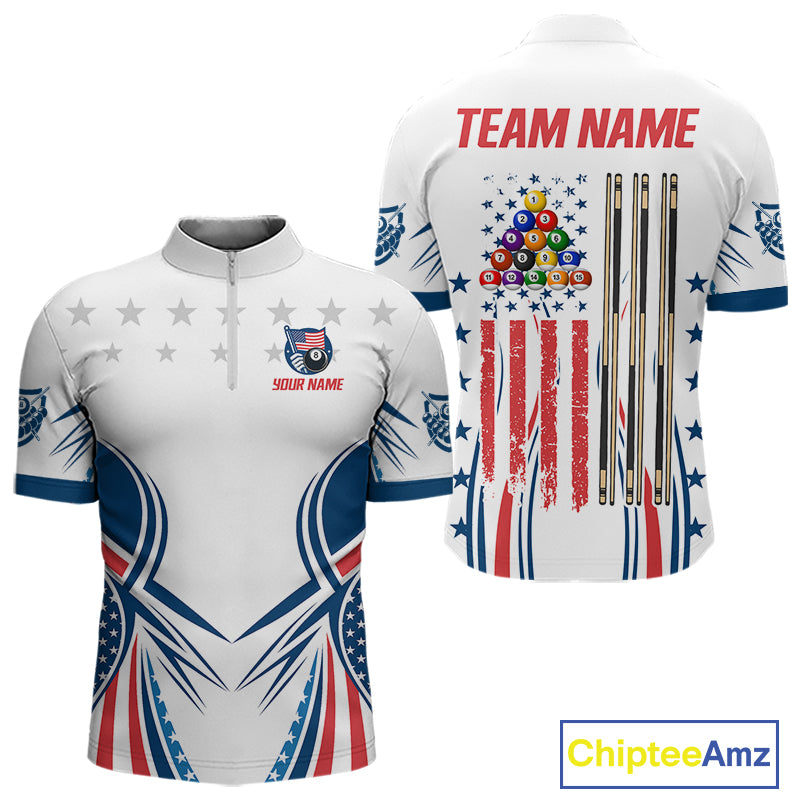 Patriotic American Flag 8 Ball Billiard Shirt For Men Custom Pool Team Jerseys Polo & Quarter Zip TDM4769