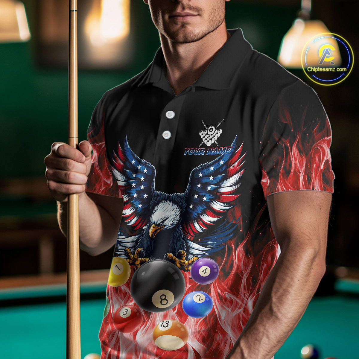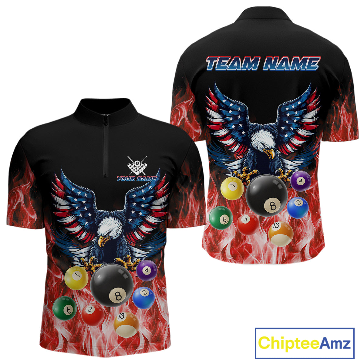 Personalized American Flag Eagle Billiard Ball Pool Shirt For Men Custom Billiard Team Jersey|Red TDM4807
