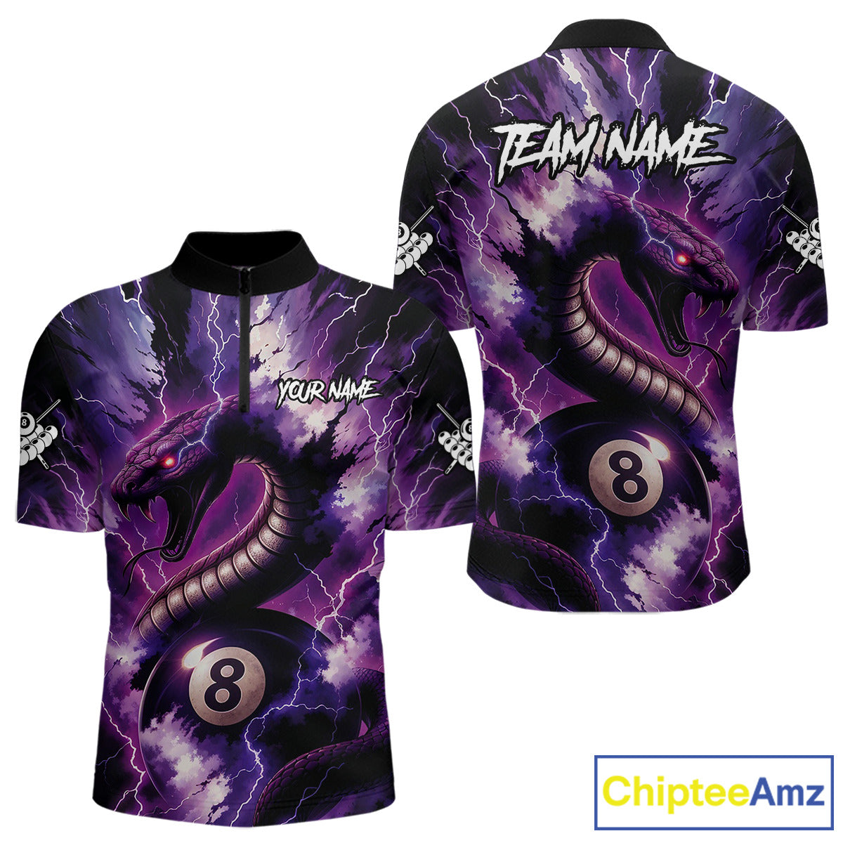 Purple Thunder Lightning Cobra Snake 8 Ball Billiard Shirt For Men Custom Pool Team League Jersey TDM4838