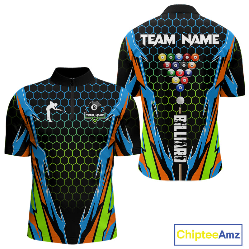 Colorful 8 Ball Billiard Jersey For Men Custom 8 Ball Pool Team Shirt Billiard Polo & 1/4 Zip TDM4934
