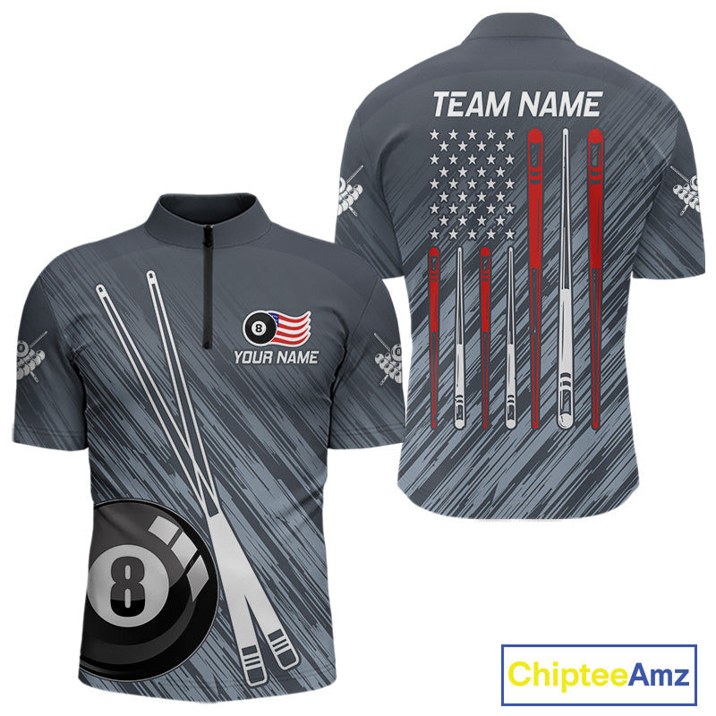 Personalized Billiard US Flag 8 Ball Pool Shirt For Men, Billiard Team Jersey Polo & 1/4 Zip TDM4989