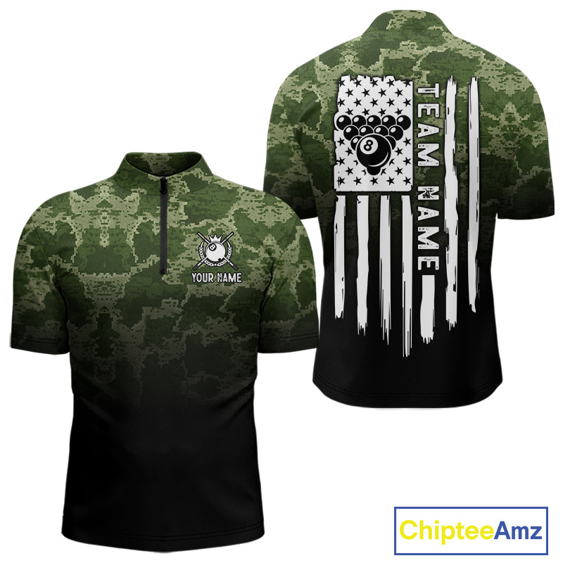 Black And Green Camo American Flag 8 Ball Billiard Shirt For Men Custom Patriotic Pool Team Jersey TDM5036