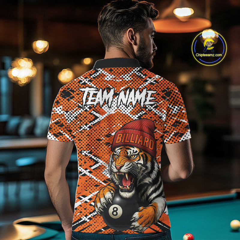 Personalized Orange Black Grunge Tiger Billiard Shirt For Men Custom 8 Ball Pool Team Jersey TDM5100
