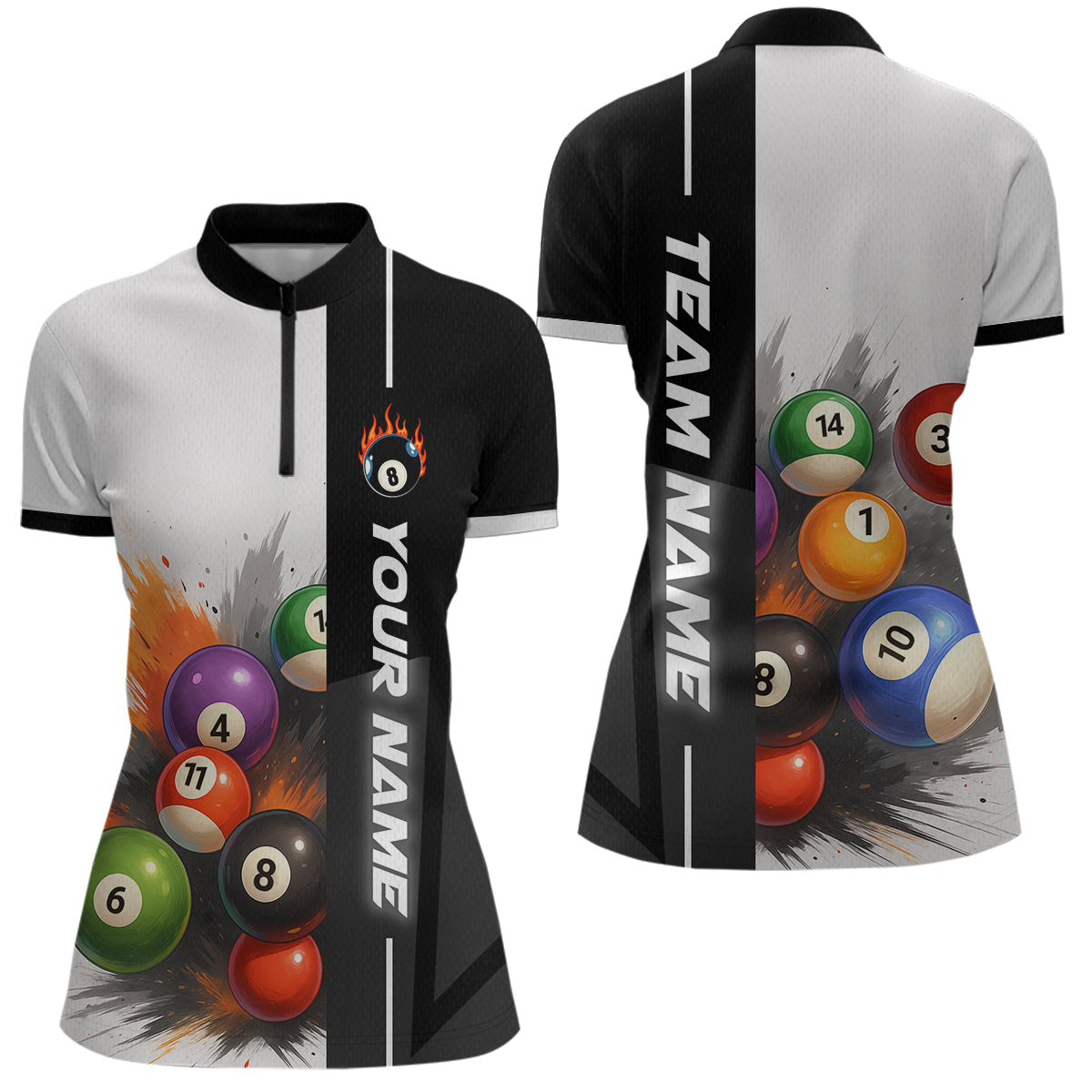 Personalized Women Billiard Shirts Ball Pool Polo & 1/4 Zip Billiard Team Jerseys Billiard Shirt NNT59