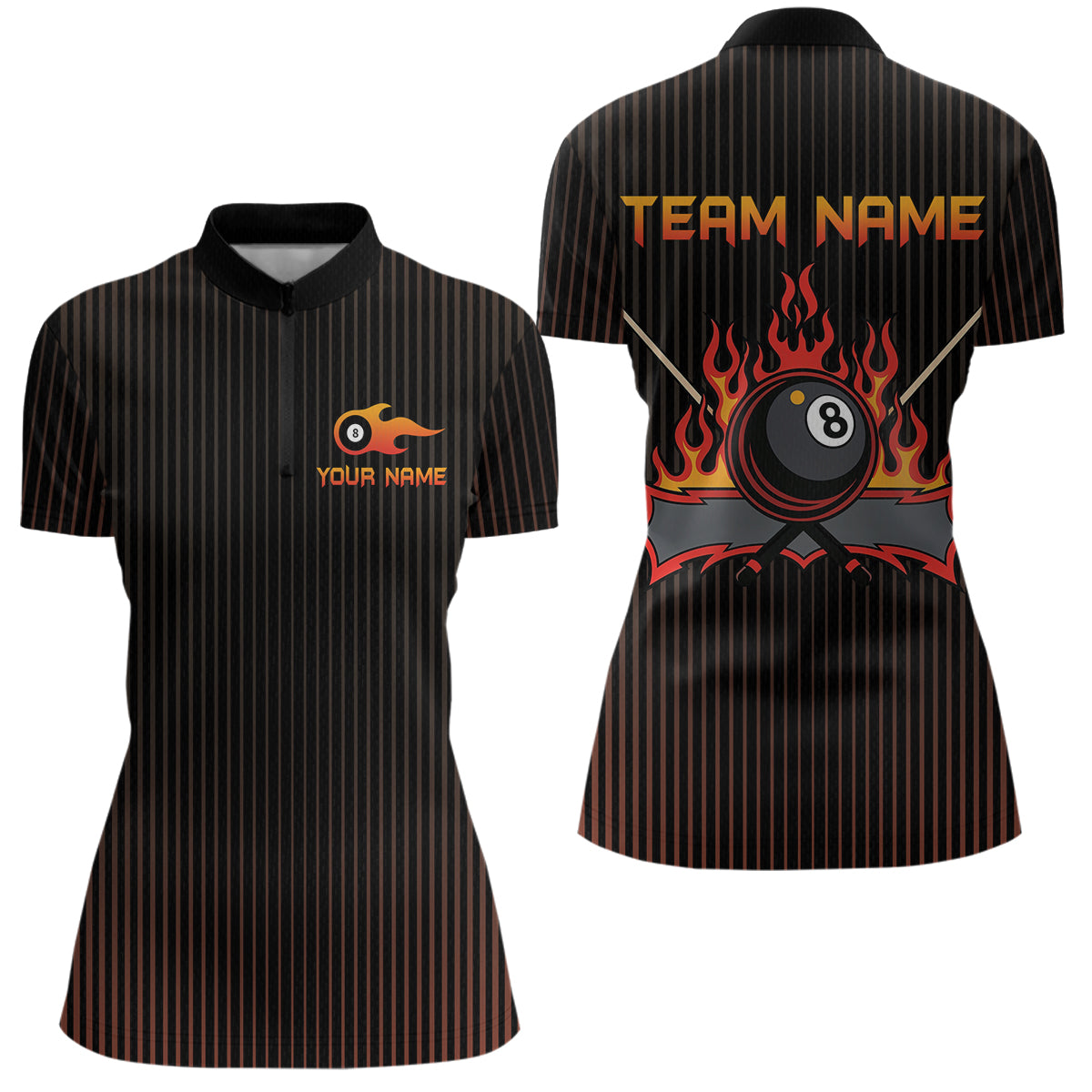 Custom Orange 8 Ball Flame Billiard Shirts for Women, Billiard Team Polo & 1/4 Zip Shirts NNT62