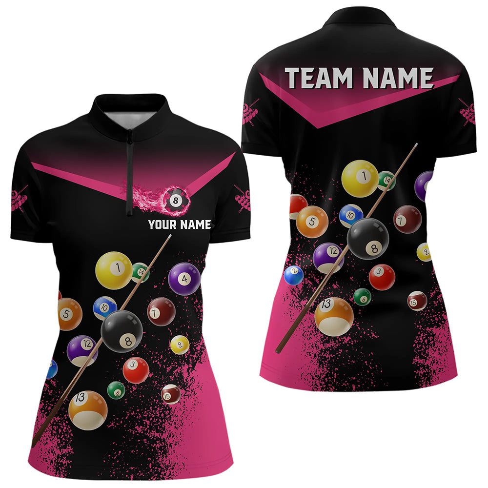 Personalized Grunge Pink Black 3D Pool Balls Women Billiard Shirts Custom Billiard Jerseys For Team TDM3439
