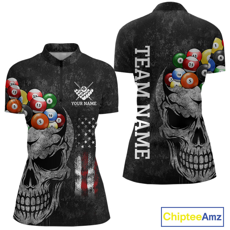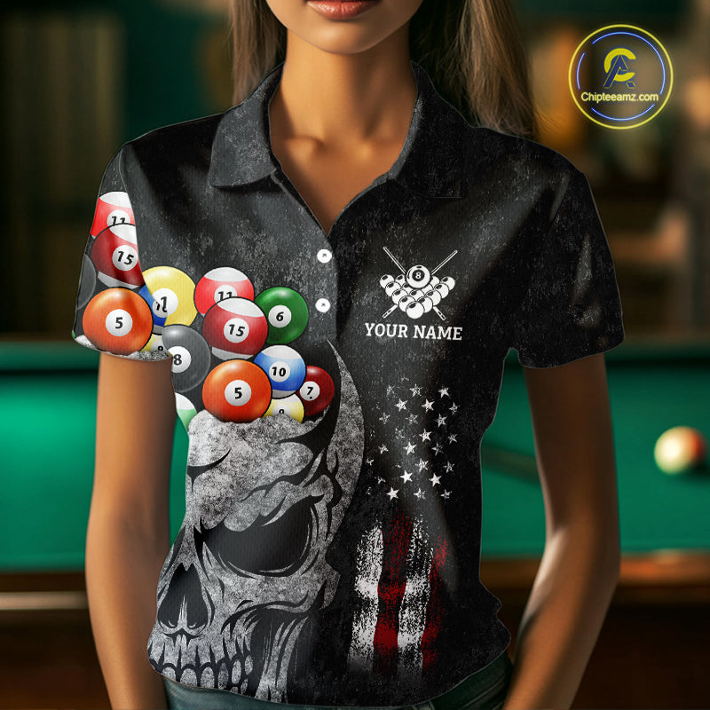 Personalized Grunge Skull Billiard Shirt For Women Custom Patriotic American Flag Pool Team Jerseys TDM4196