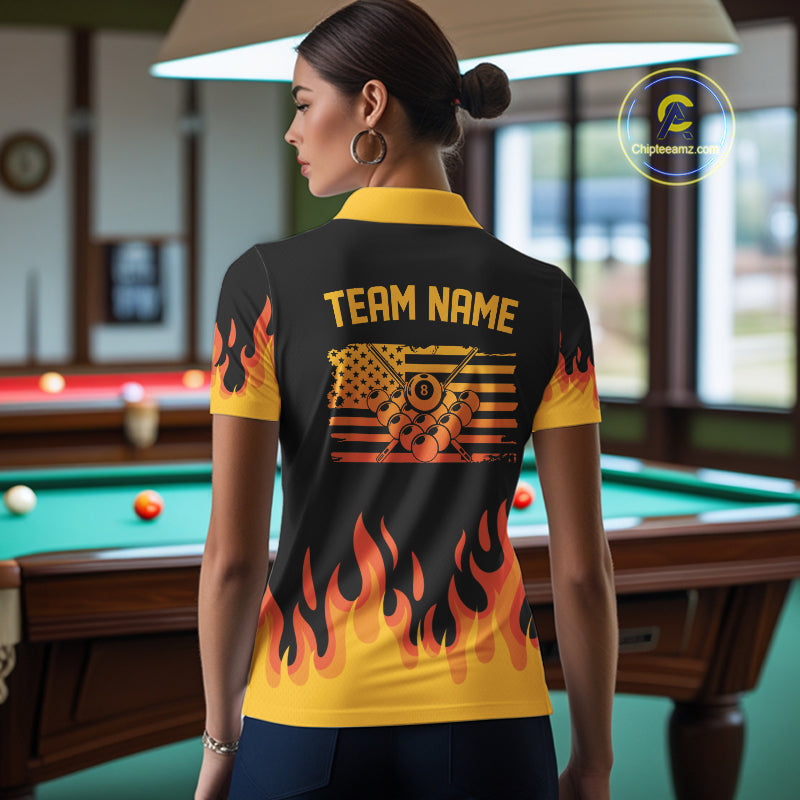 Personalized Orange Flaming Billiard Jersey For Women Custom 8 Ball Pool Billiard Team Shirts TDM4296