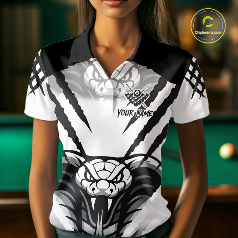 White Black Billiard Jersey Polo & 1/4 Zip Custom 8 Ball Cobra Snake Billiard Team Shirt For Women TDM4519
