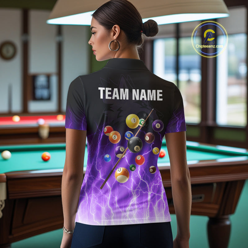 Custom Billiard Shirt For Women, Purple Thunder Lightning Wolf Pool Balls Team Jersey Polo & 1/4 Zip TDM4559