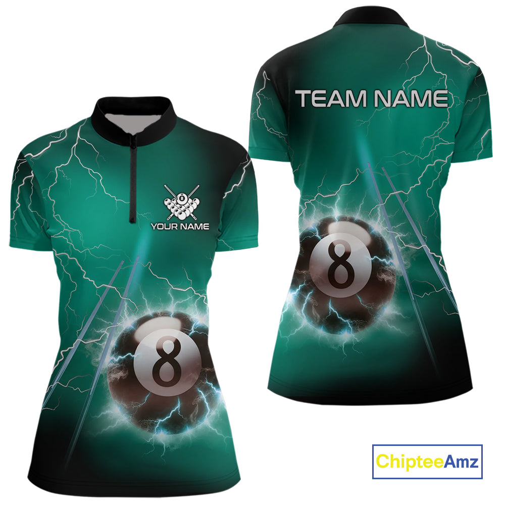 Personalized Turquoise Thunder Lightning 8 Ball Pool Billiard Shirt For Women, Billiard Team Jersey TDM4609