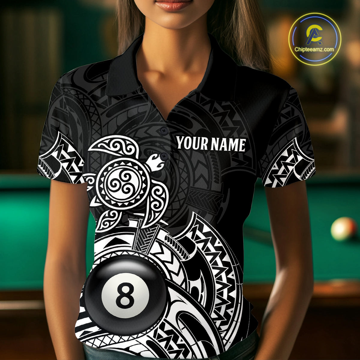 Custom White Black Tribal Turtle Billiard Shirts For Women | 8 Ball Pool Team Jerseys TDM4690