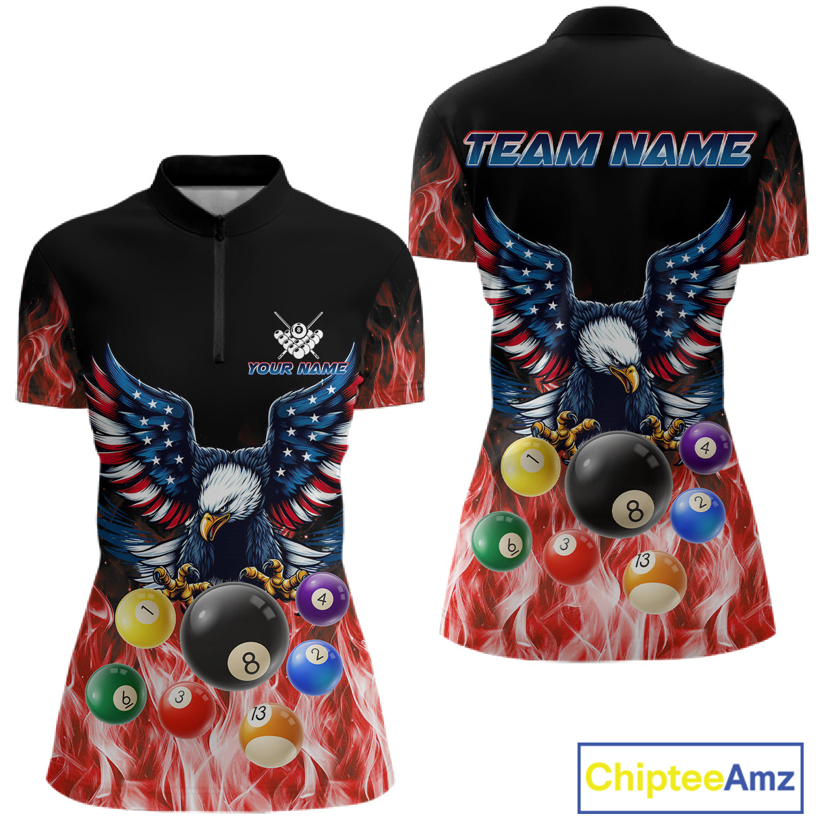 Personalized American Flag Eagle Billiard Ball Pool Shirt For Women Custom Billiard Team Jersey|Red TDM4807