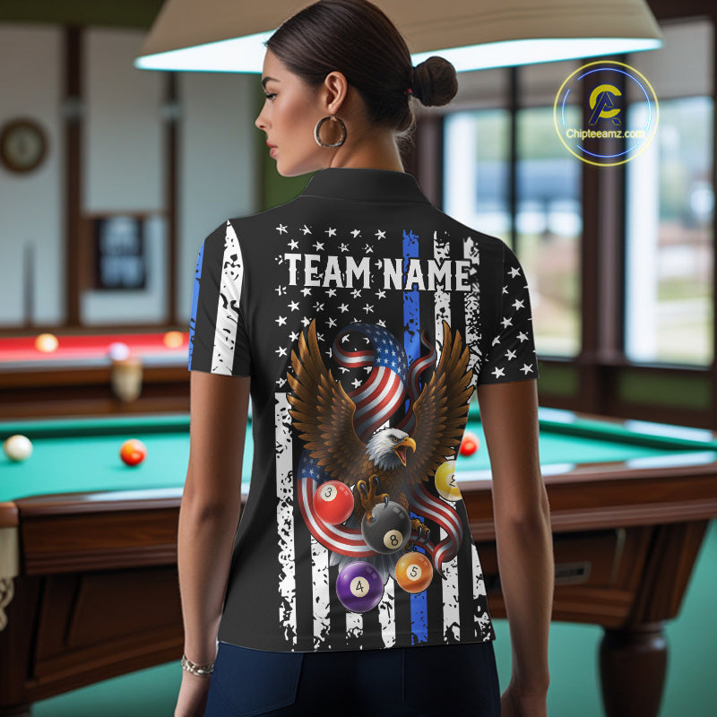 Billiard Eagle American Flag Stripes Pool Jersey For Women Custom Patriotic Billiard Team Shirt|Blue TDM4982