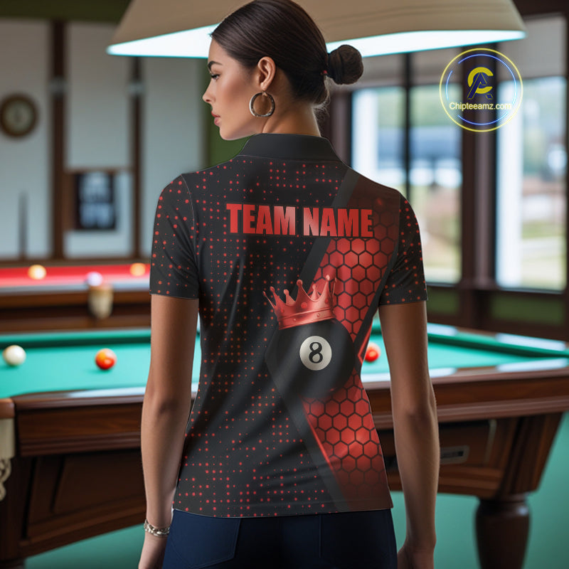 Personalized Red 8 Ball Pool Crown Hexagon Billiard Shirt For Women, Billiard League Team Jersey TDM5047
