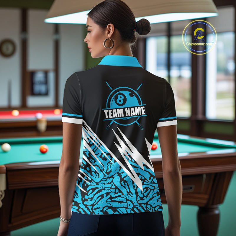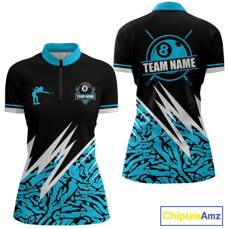 Personalized 8 Ball Billiard Jersey For Women Custom Black And Blue Pool Team Shirt Polo & 1/4 Zip TDM5107