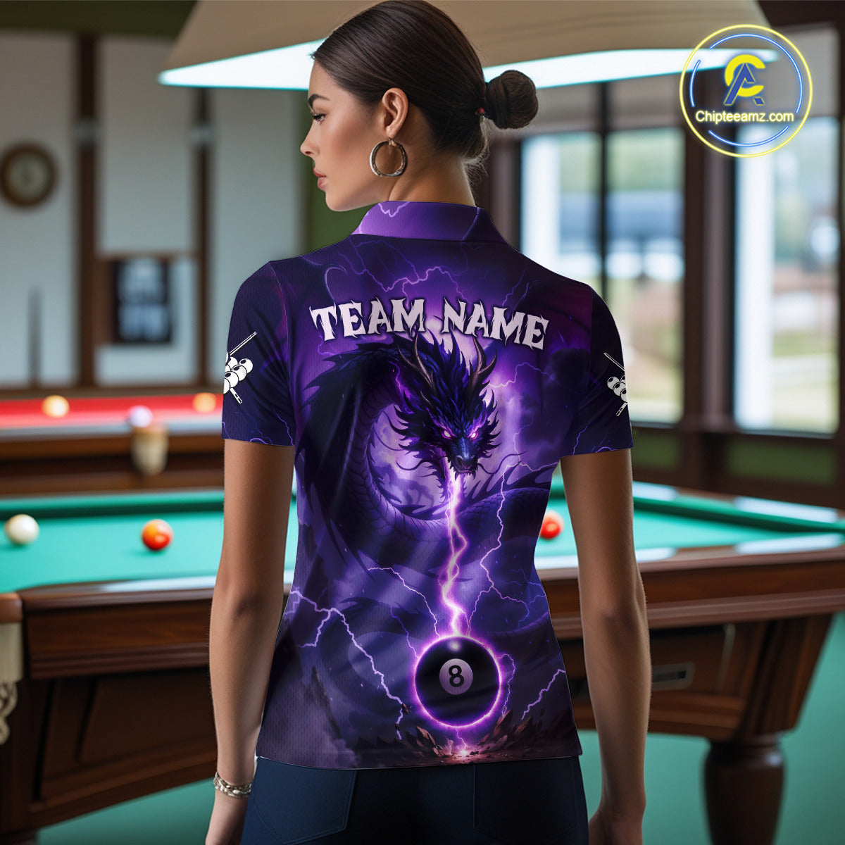 Purple 8 Ball Lightning Dragon Billiard Jersey For Women Custom Pool Team Shirt Polo & 1/4 Zip TDM5114