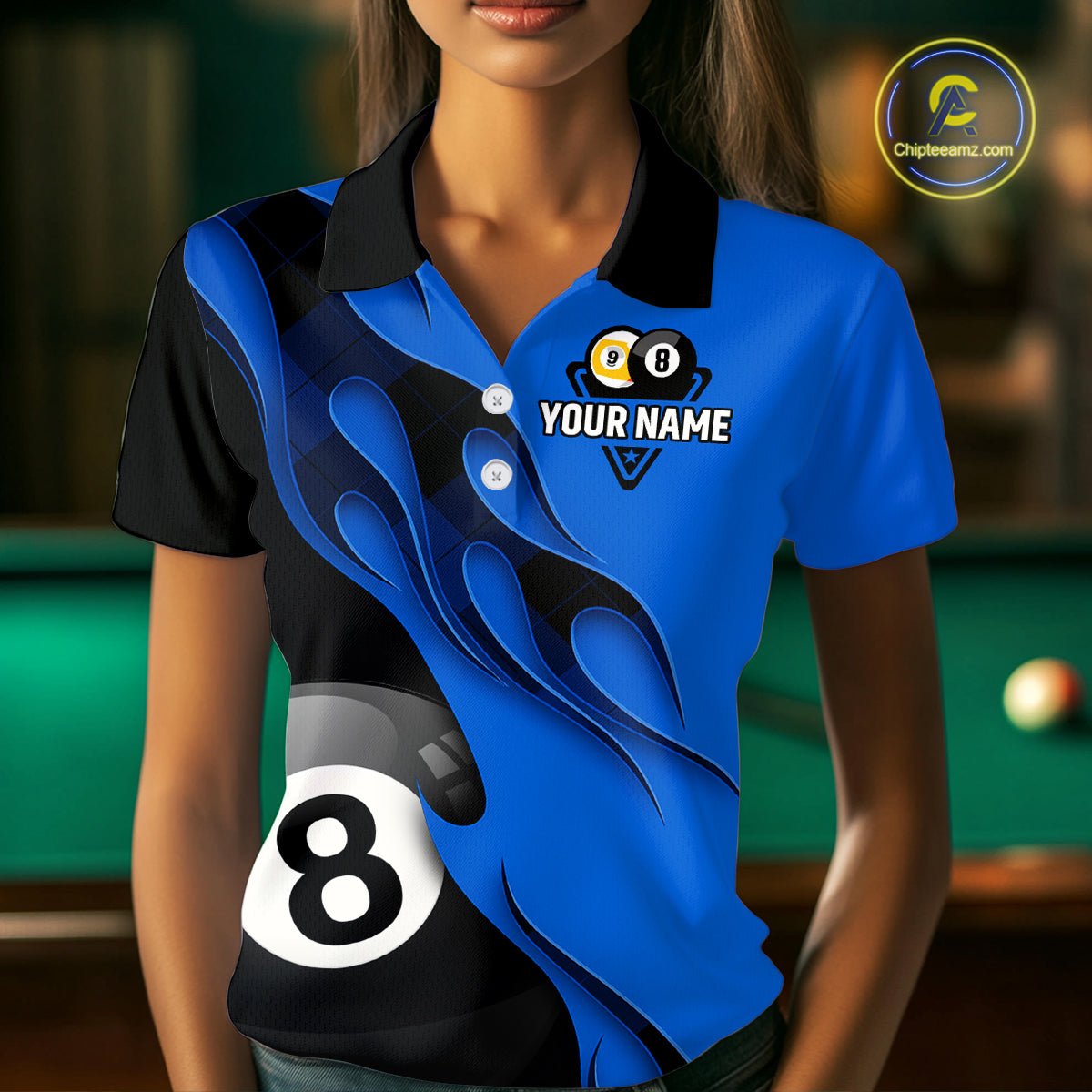 Black And Blue Billiard 8 Ball & 9 Ball Pool Shirt For Women Custom Billiard Team Jersey Uniform TDM5163