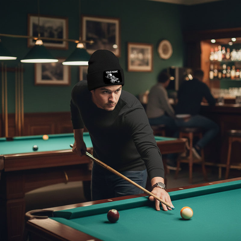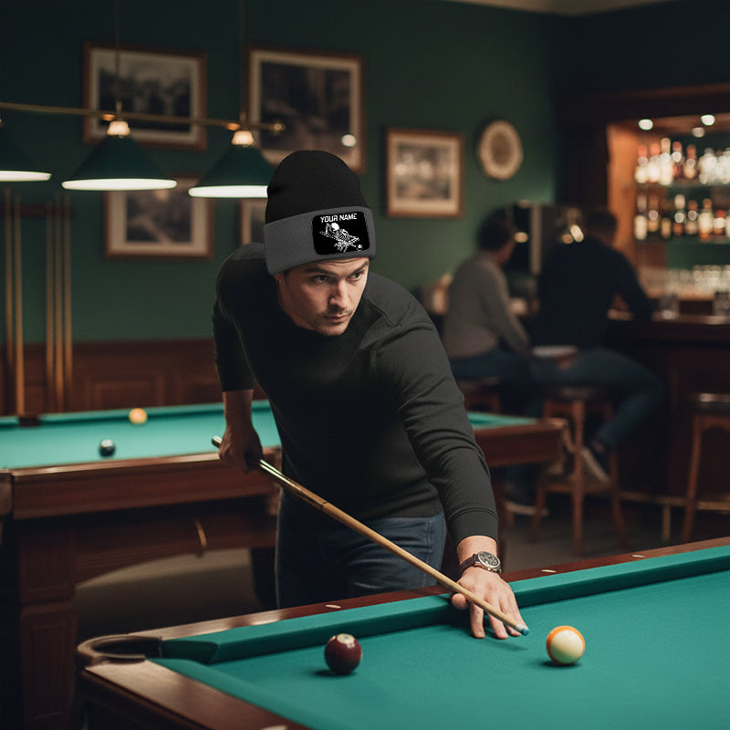 Whether you're heading to a winter billiard tournament, cheering for your team, or creating standout merch for your billiard club, this knit beanie delivers both function and personality.