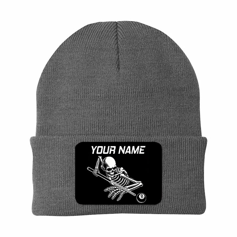 Personalized Skull 8 Ball Billiard Knit Beanie Hat With Rectangle Patch Custom Billiard Knit Cap TDM4940