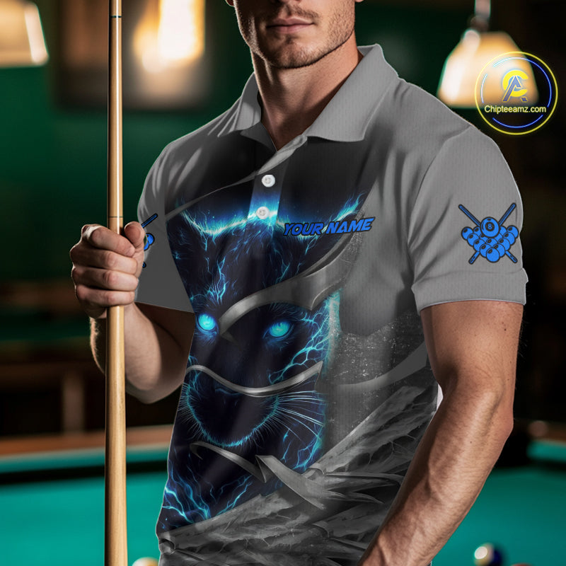 Personalized Panther Lightning 3D Billiard Balls Pool Shirts For Men, Billiard League Jerseys |Blue TDM2790