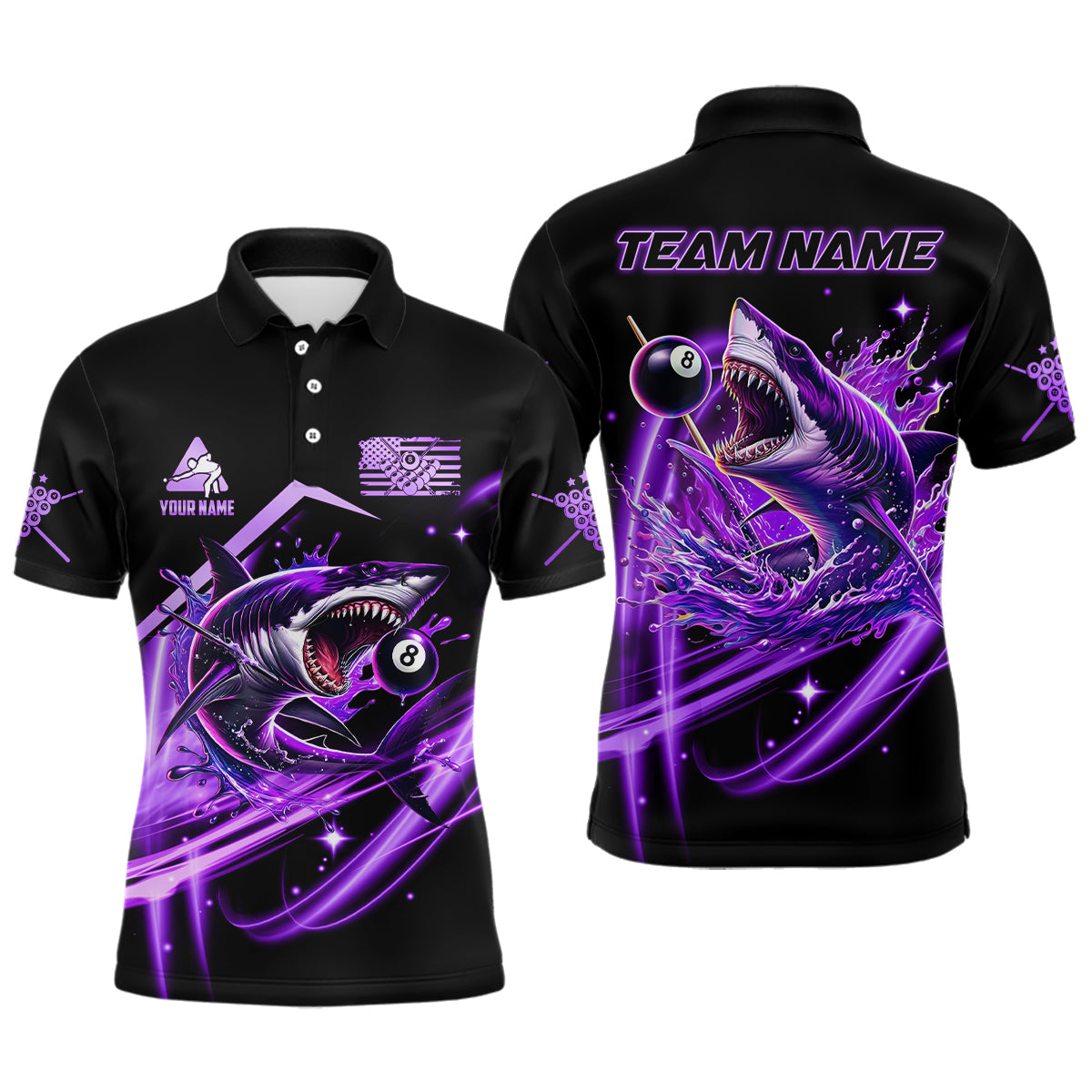 Purple 8 Ball Pool Billiard Shark Polo & Quarter Zip For Men Custom Team League Billiard Jerseys TDM3407