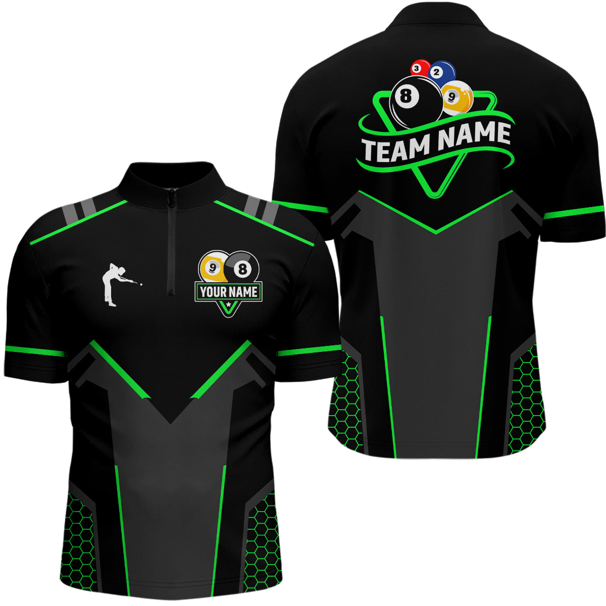 Personalized Billiard 8 Ball & 9 Ball Pool Polo, 1/4 Zip For Men Custom Team Billiard Jersey |Green TDM3581
