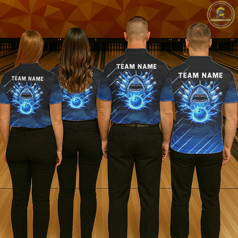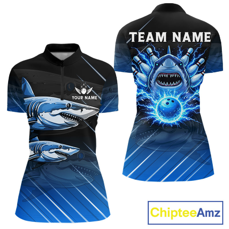 Black and blue shark bowling shirt for women custom lightning thunder bowling polo, quarter zip shirt NQS11378