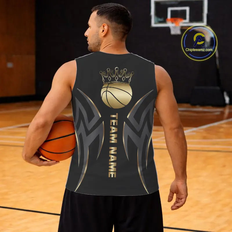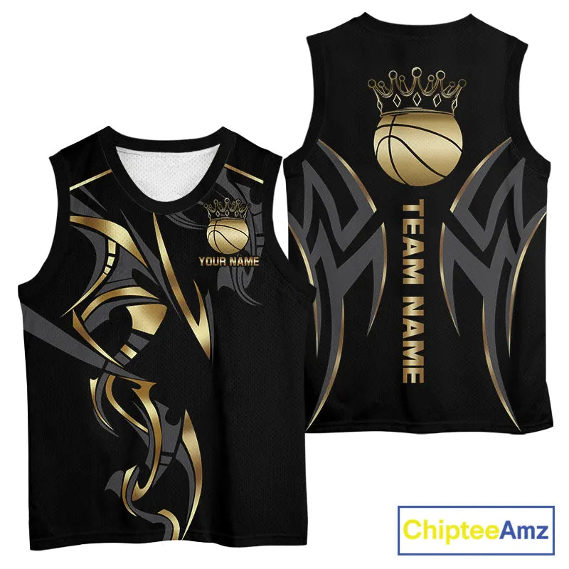 Black and Gold crown Basketball Vest, T-shirt, Hoodie, Long sleeve Custom Bowling Team jerseys NQS11392