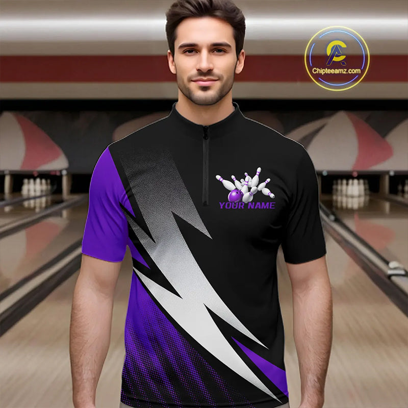 Black And Purple Custom Bowling Jerseys, Bowling Team Shirts For Men Bowling Tournament Outfits IPHW7707