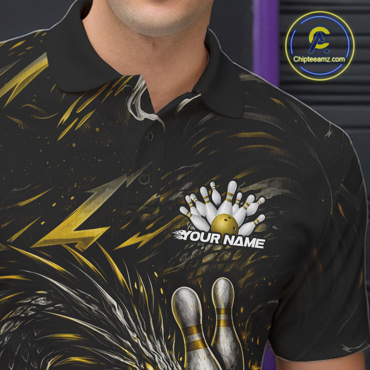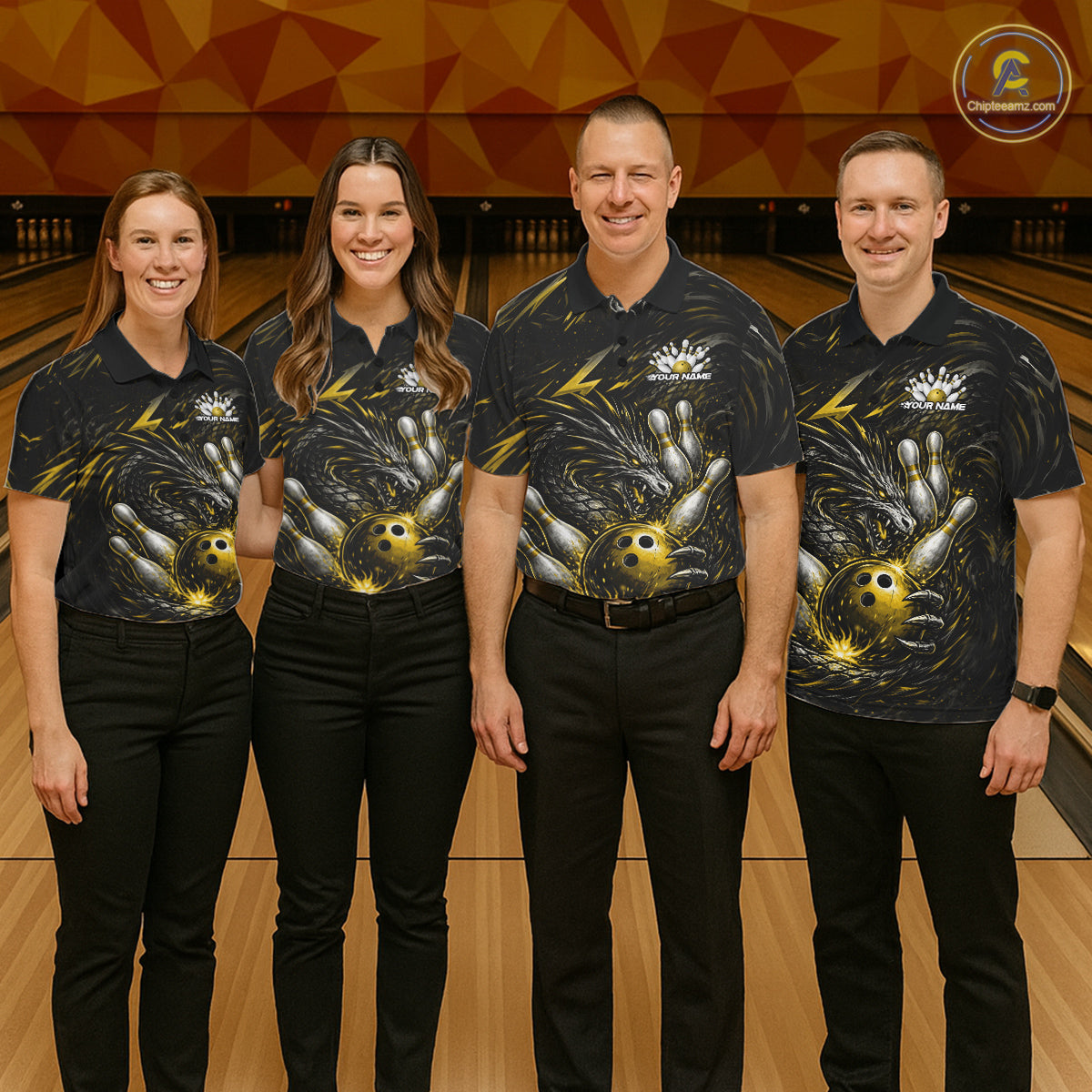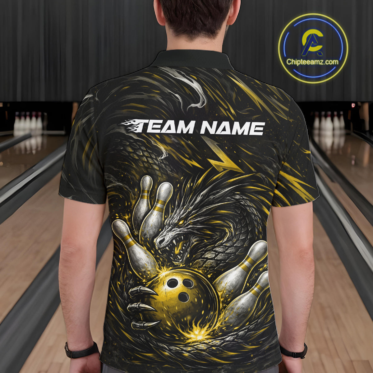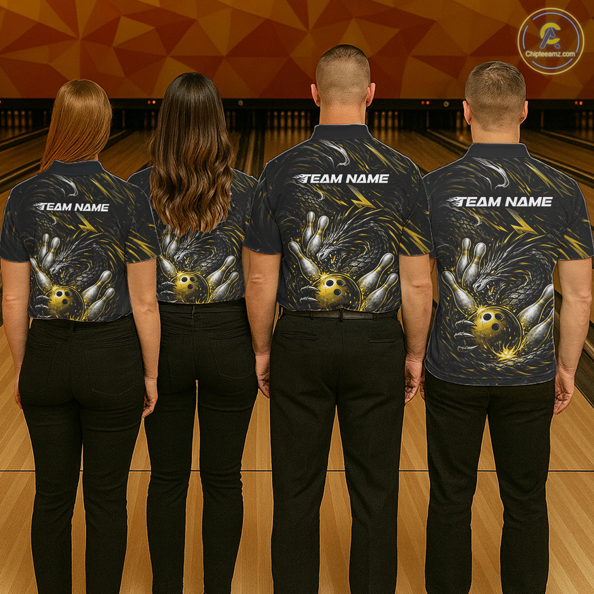 Custom Black And Gold Dragon Bowling Jerseys, Dragon Bowling Team Men Polo Shirt IPHW10364