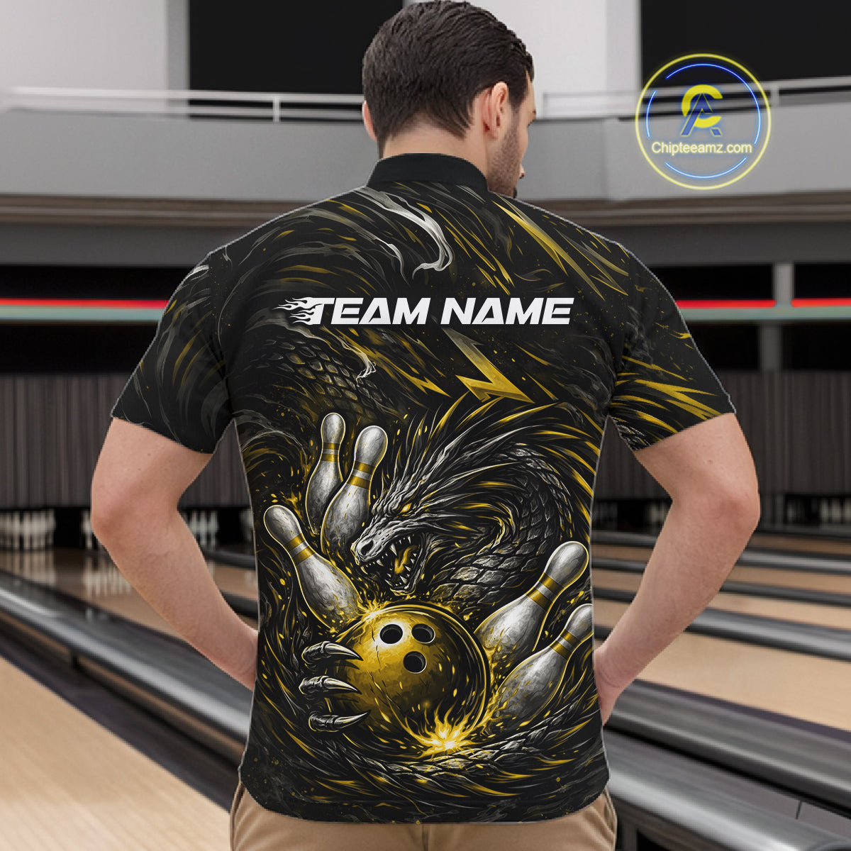 Custom Black And Gold Dragon Bowling Jerseys, Dragon Bowling Team Men Quarter-Zip Shirt IPHW10364