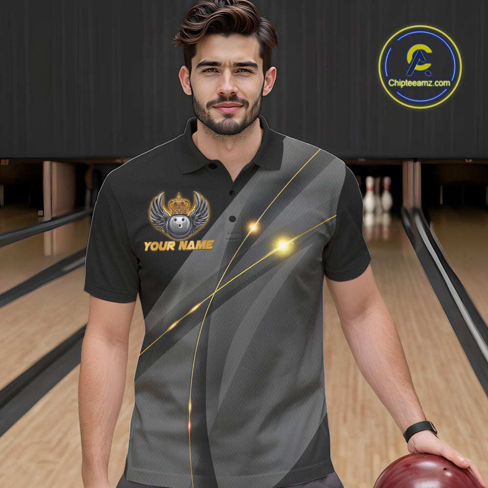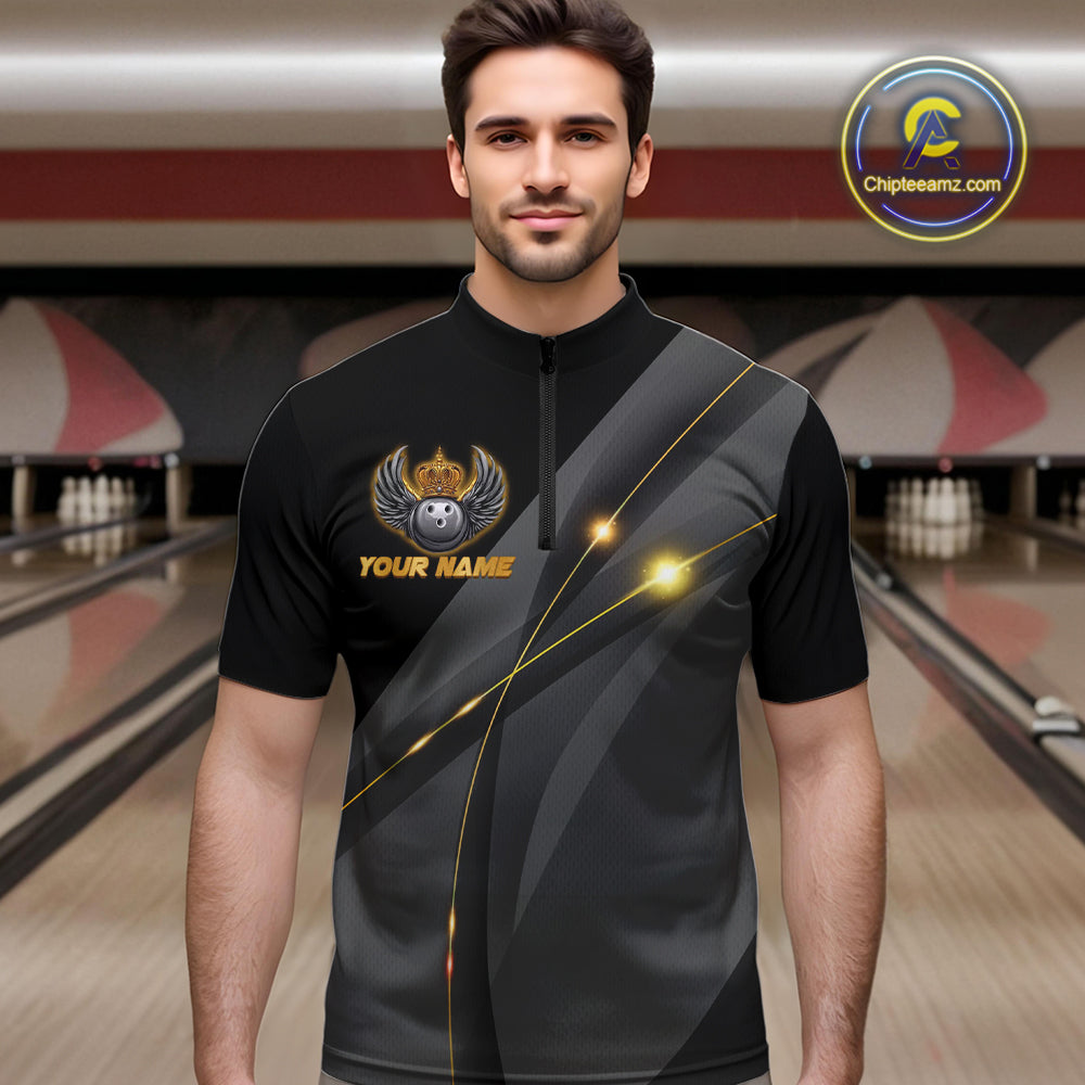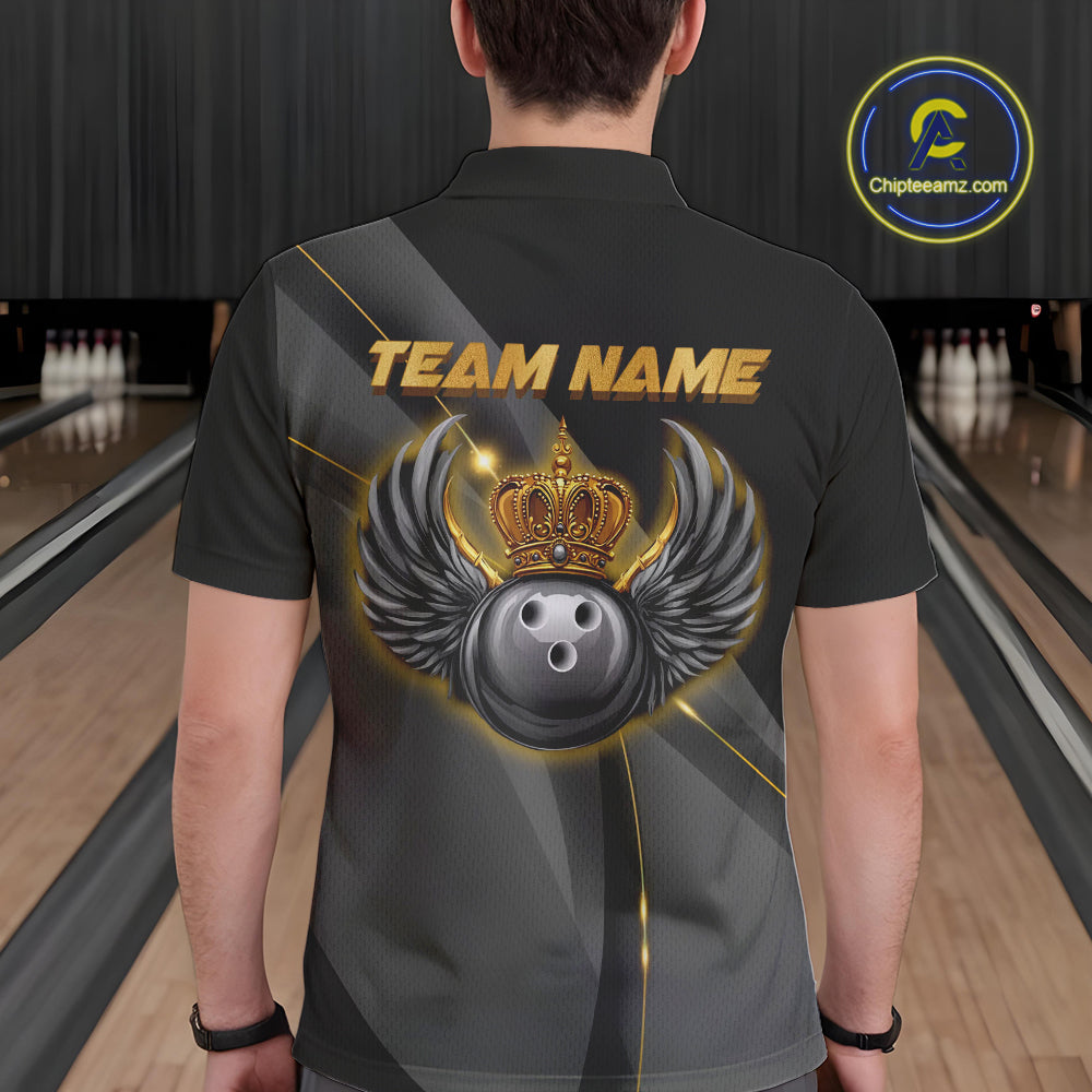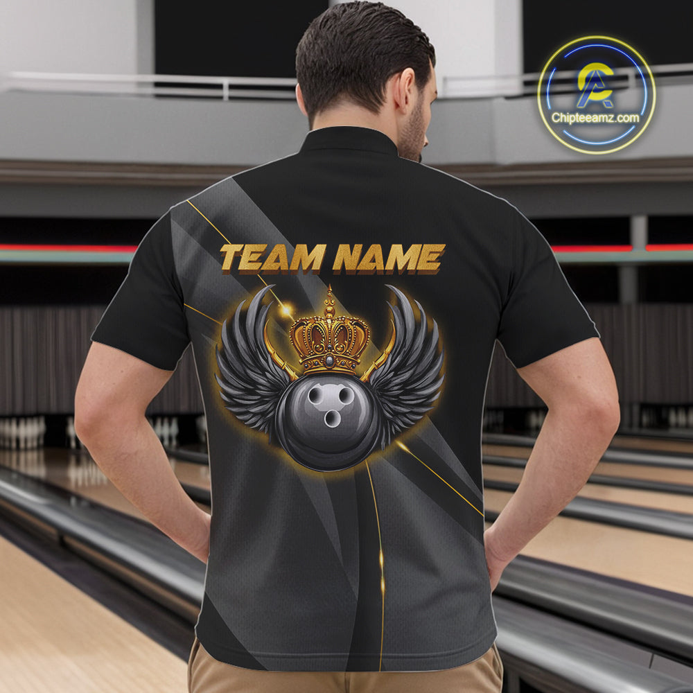 Black and Gold Crown Bowling ball wings Bowling Shirts For Men Custom Bowling Team Outfits NQS10549