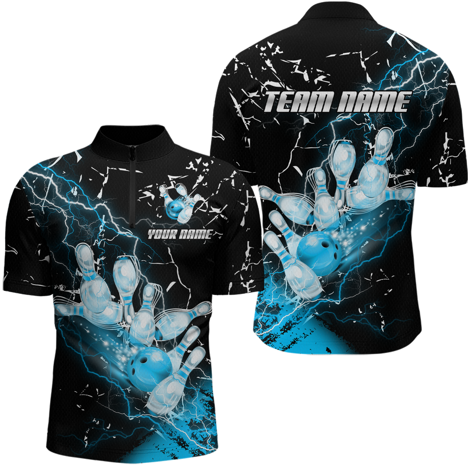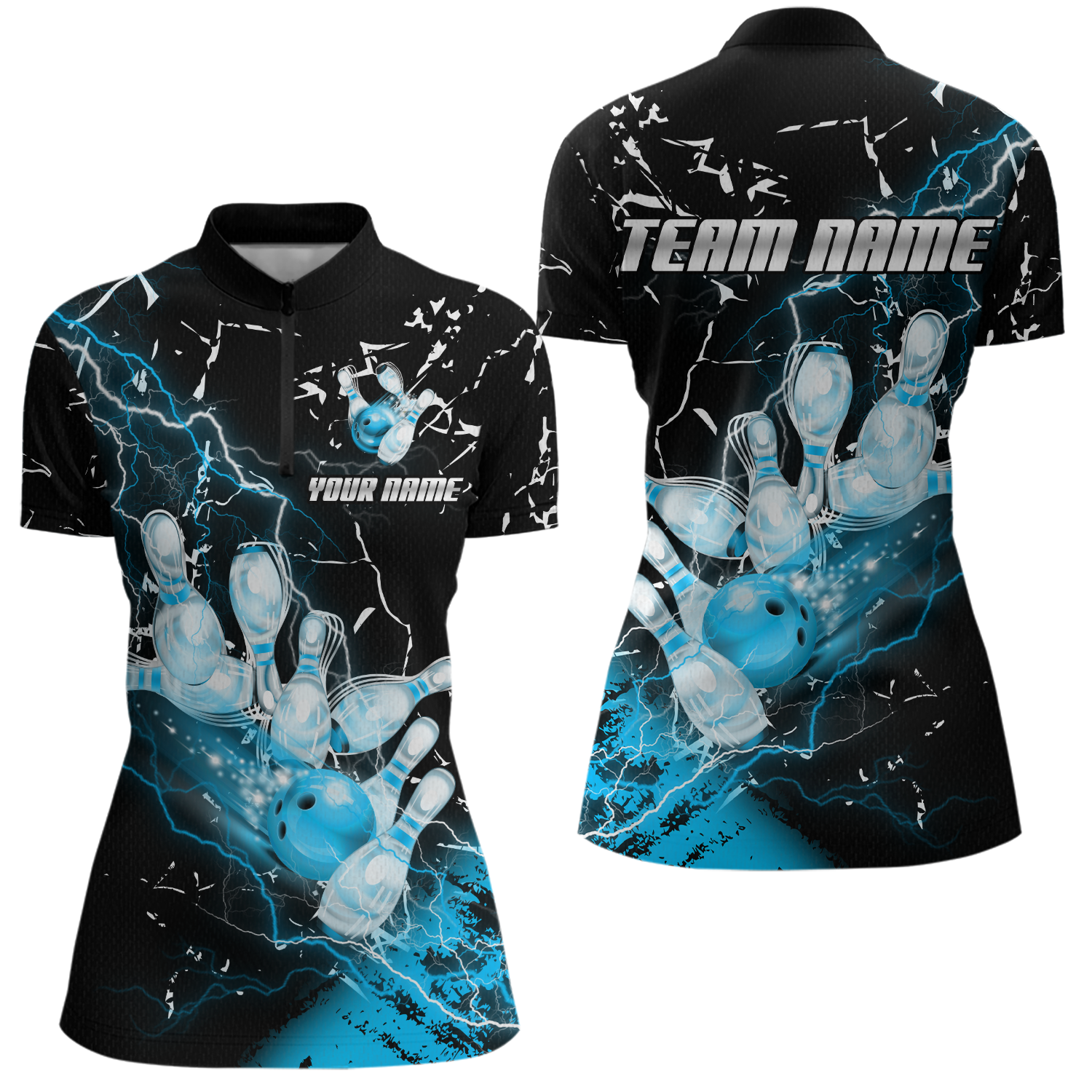 Custom Teal Lightning Bowling Shirts for Men Women Team Bowling Polo & 1/4 Zip MBL80