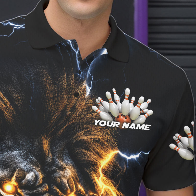 Custom Blue Thunder Lightning Lion Bowling Team Men Polo Shirts, Lion Bowling League Shirt IPHW8986