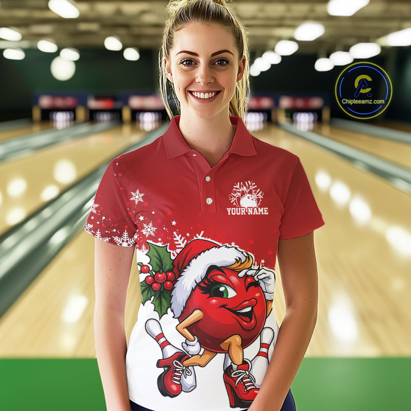 Custom Cute Funny Ladies Christmas Bowling Polo Shirts, Women Team Xmas Bowling Outfit IPHW10136