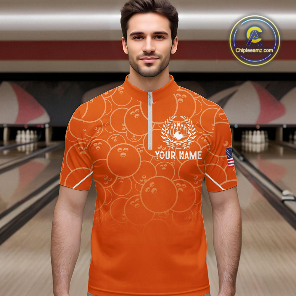 Orange bowling camo Mens bowling shirts Custom American flag patriotic bowling team league jerseys NQS10715