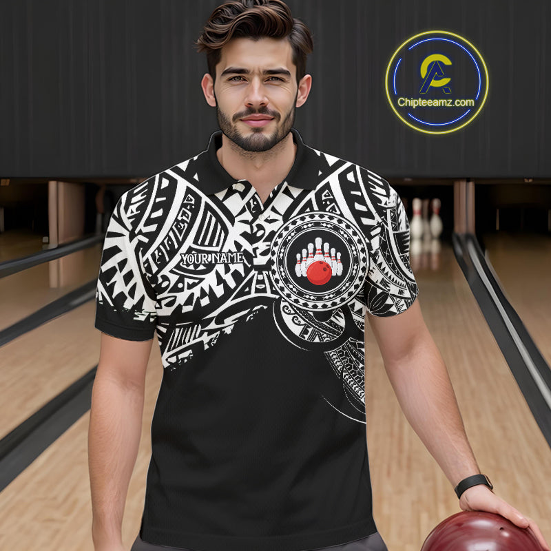 Personalized Black and White Tribal pattern Mens Bowling Shirts Custom Team Bowling outfit for men NQS10761