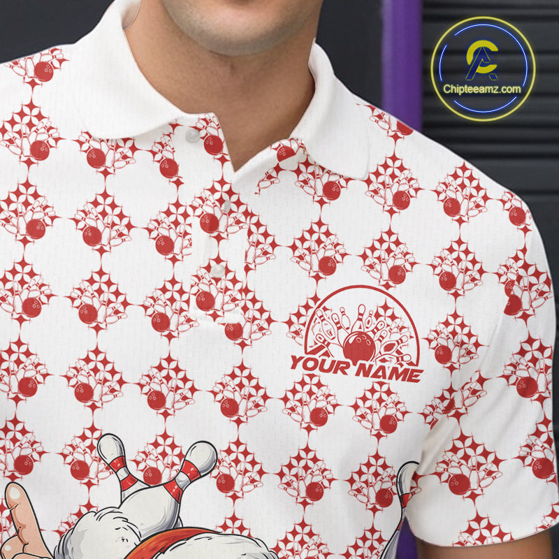 Custom Funny Santa Claus Christmas Bowling Men Polo Shirts, Xmas Bowling Team Shirt IPHW10111